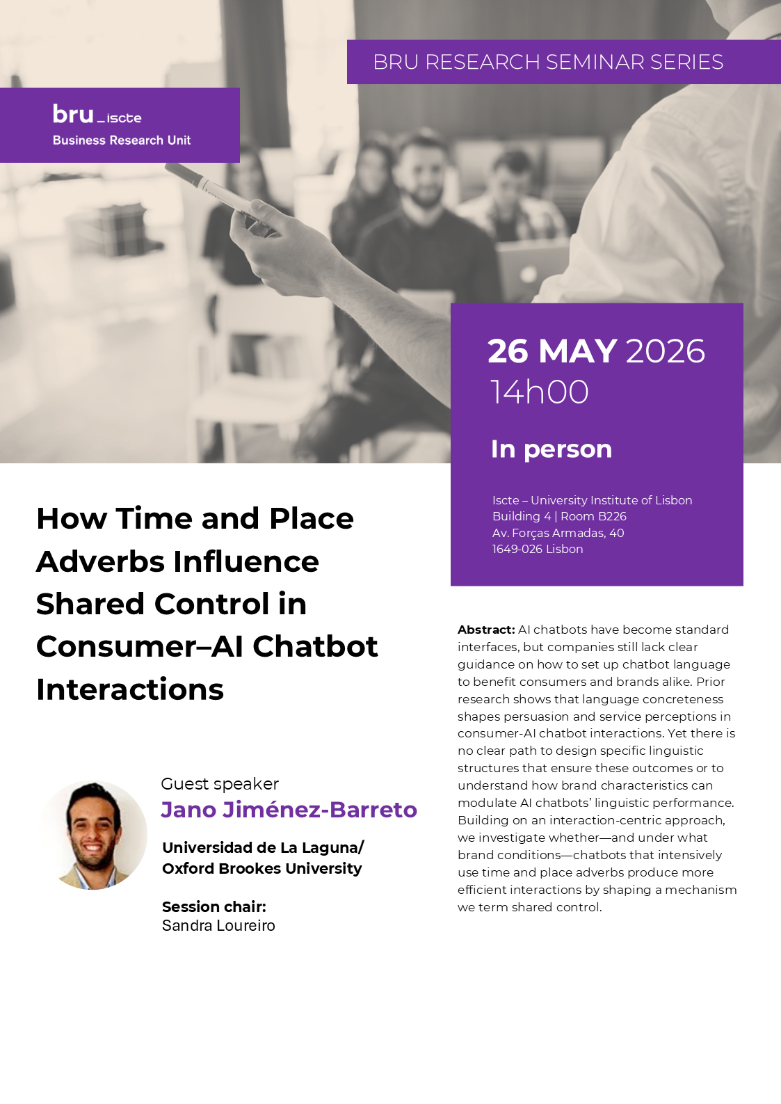 Guest Speaker: Jano Jiménez-Barreto (Universidad de La Laguna / Oxford Brookes University)