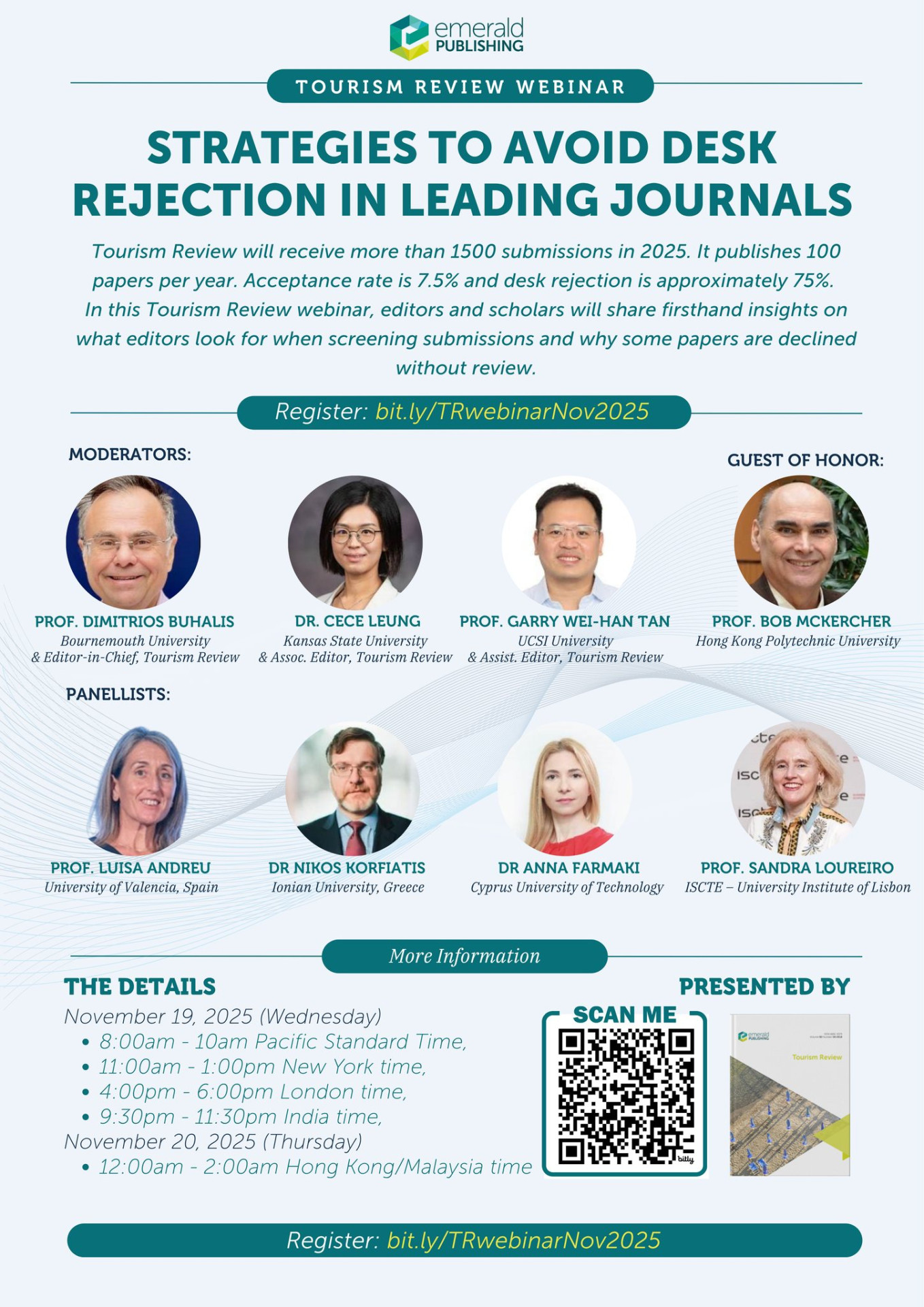 BRU-Iscte researcher Sandra Loureiro was a guest speaker in the Tourism Review Webinar – Strategies to Avoid Desk Rejection in Leading Journals. The event was held on November 19, 2025, and was organised by the publisher EMERALD and the journal TOURISM REVIEW; however, it was a debate open to all journals and anyone interested in better understanding the publication process.