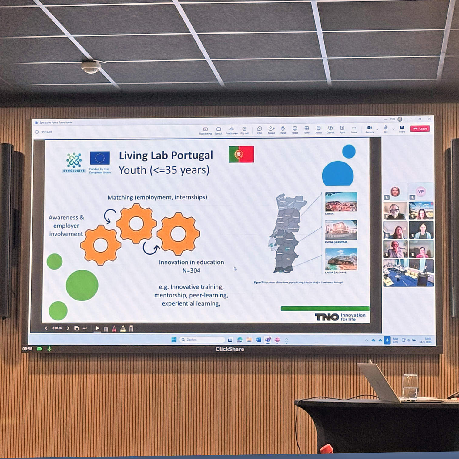 On September 18, the SYNCLUSIVE project held a Policy Round Table in Brussels, gathering the consortium with European Commission officials. Part of the SYNCLUSIVE team, representing Iscte, was BRU-Iscte researcher Maria José Sousa.